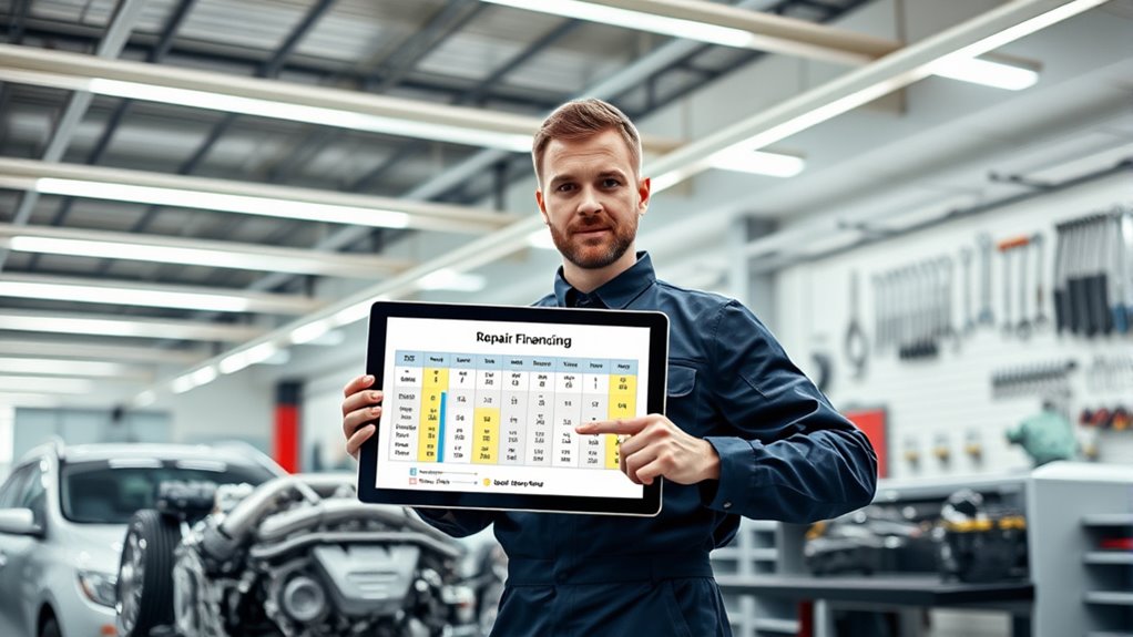 Understanding repair financing is like having a safety net—you get the help you need without sudden financial stress. Auto shops offer flexible options that make fixing your vehicle more manageable, so you can get back on the road faster. Don’t hesitate to ask about financing plans; they’re there to support you through unexpected repairs. With the right plan, you’ll feel as confident as a captain steering through rough waters, knowing help is just a call away.