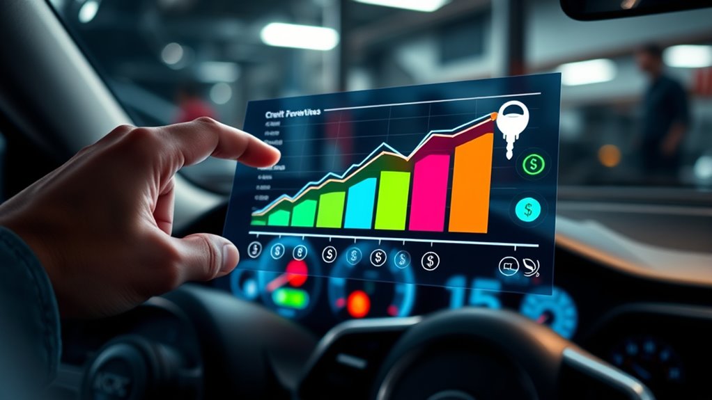 Your credit score impacts how easily you can get financing for car repairs. A good score means you’re more likely to qualify for affordable loans and payment plans, helping you cover urgent repair costs without stress. Poor credit can limit your options, often leading to higher-interest loans or even denial. By keeping your credit healthy, you make financing repairs simpler and more affordable. If you want to learn more about improving your credit, keep exploring.