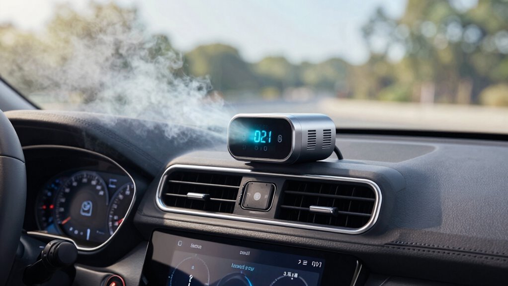 Have you ever wondered how ozone generators eliminate stubborn odors in cars? They work by producing ozone, a powerful oxidizer that reacts with odor-causing molecules, breaking them down. This process enhances air purification within your vehicle, effectively removing smoke, pet smells, and mold. Ozone generators are popular for vehicle maintenance because they can reach hidden areas and neutralize odors deep within upholstery and vents. When operated correctly, they improve the cabin’s air quality without the need for harsh chemicals. Additionally, understanding ozone safety measures is crucial because improper use can pose health risks. Using proper ventilation practices during and after ozone treatment helps prevent any potential health effects. Proper device operation is essential to ensure safety while maximizing odor elimination. However, they aren’t just air purifiers; they also help maintain a fresher environment in your car. Understanding how these devices function helps you see their role in keeping your vehicle smelling fresh, but safety precautions are essential to avoid potential hazards.