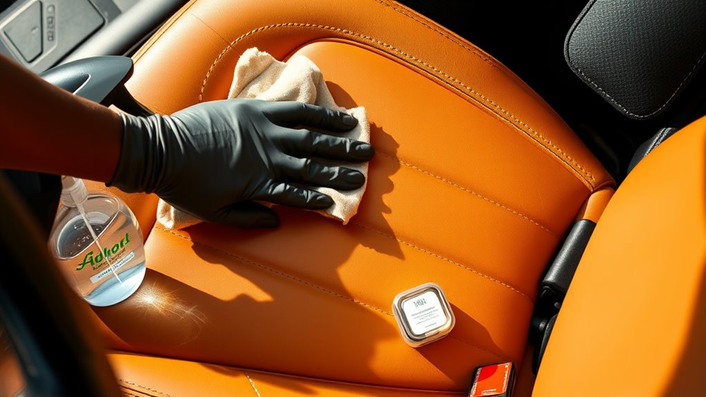 Using household cleaners on your leather seats isn’t recommended because many contain chemicals that can damage the leather. For proper leather seat maintenance, stick to products specifically designed for leather or use mild soap and water. Household cleaners may seem convenient, but they often cause more harm than good. Always test any cleaner on a small, hidden area first to avoid discoloration or cracking, ensuring your leather seats stay in top condition.