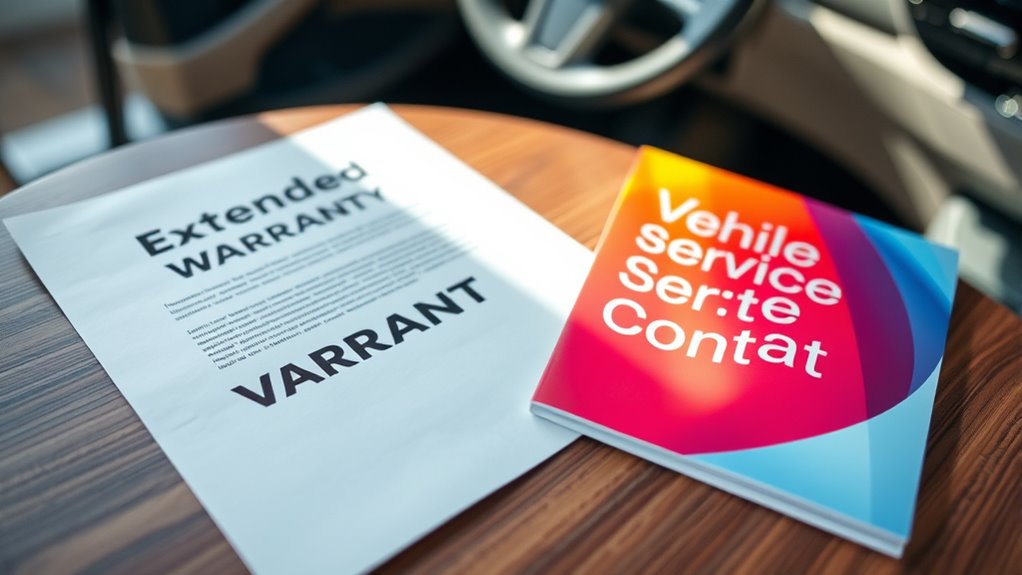 An extended warranty acts like insurance, covering major repairs after the original warranty ends, but typically excludes routine maintenance. A vehicle service contract, on the other hand, generally includes both repairs and routine services like oil changes or tire rotations. Your choice depends on whether you’re looking protection against big, unexpected expenses or wanting all-inclusive coverage that includes regular upkeep. To understand which fits your needs best, keep exploring the differences and advantages further.