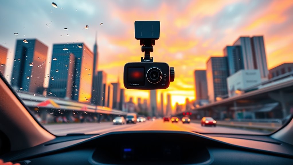 4K dash cams are generally compatible with most vehicle models, but I recommend checking your car’s power supply and available space first. Many models use standard USB or cigarette lighter adapters, making installation straightforward. If your vehicle has a unique interior setup, you might need specific mounts or adapters. I always double-check compatibility and installation requirements before purchasing to guarantee seamless use and peak performance.