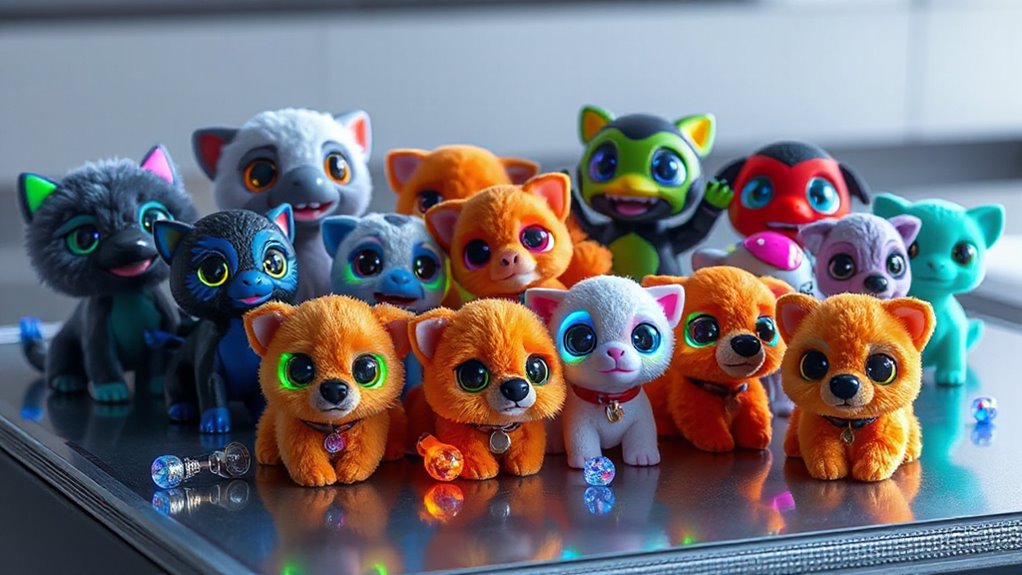 Imagine a gentle glow from the screen, like a friendly lighthouse guiding safe play. I’ve found that Bitzee digital pets come with strict safety features, including secure parental controls, age-appropriate content, and automatic shut-off timers. These tools create a safe environment, letting kids enjoy their digital pets without worries. I feel confident knowing these measures prioritize safety, ensuring kids have fun while staying protected during their playtime adventures.