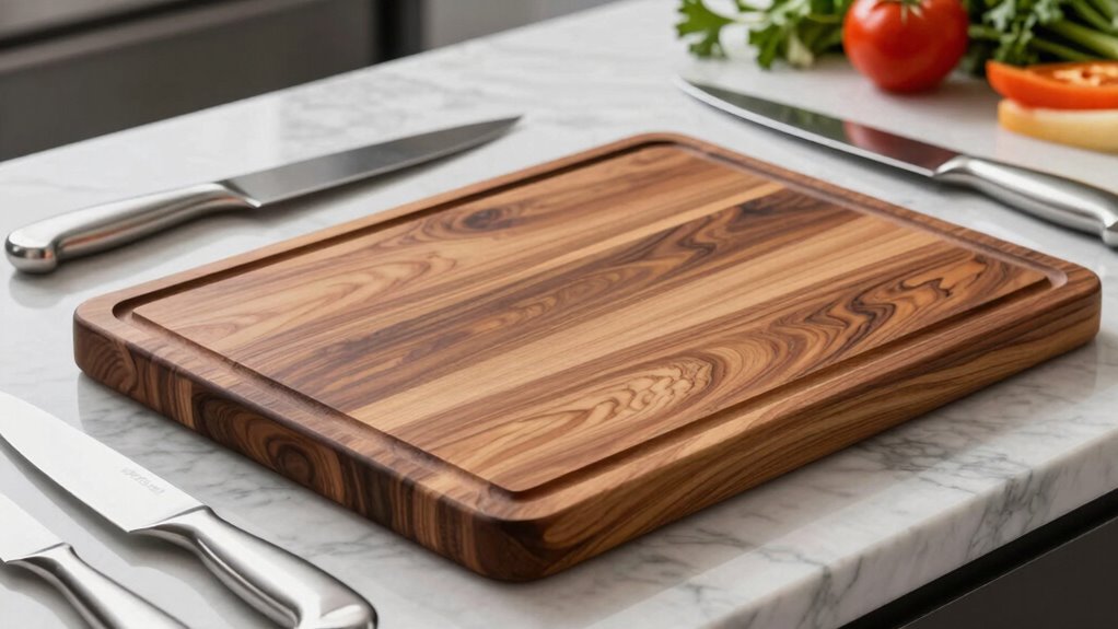 Choosing the right cutting board can transform your prep game—did you know that using the proper board can extend your knives’ lifespan by up to 30%? Whether you prefer wooden, bamboo, or innovative smart options, there’s a perfect fit for every chef. Remember, a quality cutting board isn’t just about durability; it’s about protecting your knives and elevating your kitchen experience. Invest wisely, and you’ll enjoy sharper knives and safer chopping for years to come.