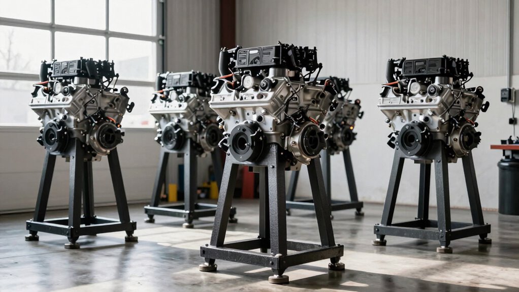 - Heavy-duty engine stands support up to 1000 lbs, suitable for various engine sizes and rebuild projects.