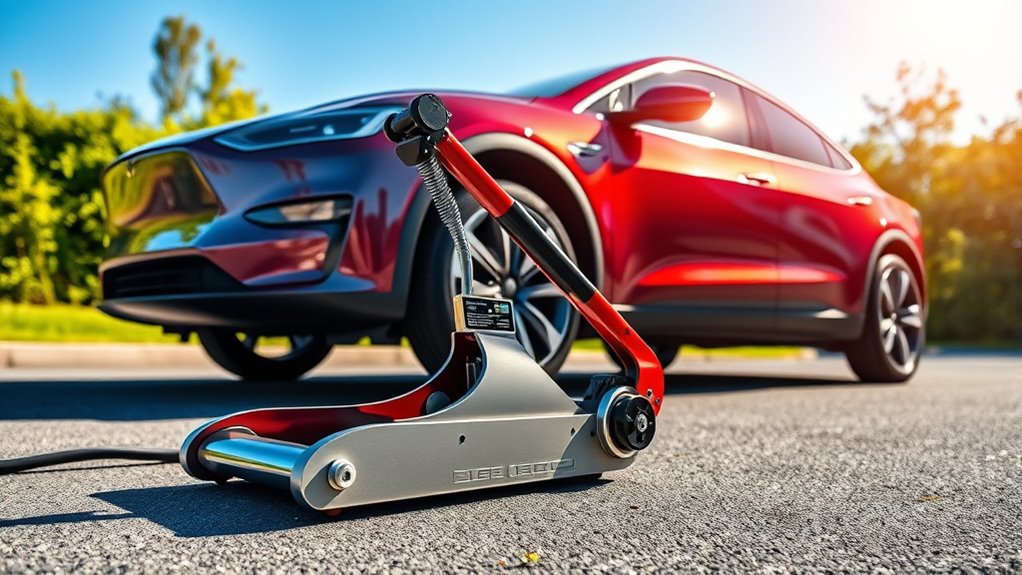 When investing in a high-end electric car jack, understanding the price and warranty options can make a significant difference in your overall satisfaction. Premium models generally come with longer warranties, between 1 to 3 years, providing peace of mind and protection against defects. These models tend to be more expensive, reflecting their advanced features, durability, and extended coverage. Comparing warranty details—such as duration and what repairs or replacements are included—is essential to guarantee good value over the product’s lifespan. Some jacks offer warranty extensions or additional service plans, offering further protection beyond standard coverage. Choosing a model with a reliable warranty can save you money on repairs or replacements, especially given the higher initial investment in premium electric car jacks.