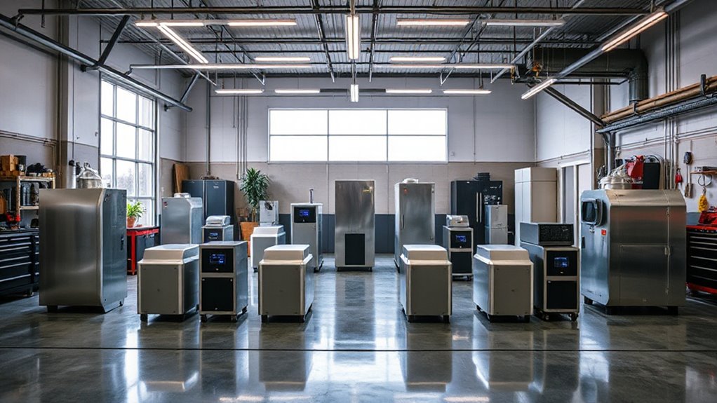 When you’re considering an industrial air scrubber for your garage, noise level performance is a critical factor. I’ve found that noise levels are measured in decibels (dBA), and lower ratings mean quieter operation, which is essential for a comfortable work environment. Many models operate below 60 dBA, ensuring minimal disruption, especially in shared spaces. The design also plays a role; features like sound-dampening materials and motor types can greatly reduce noise. I appreciate scrubbers with variable speed settings, allowing me to adjust airflow and noise according to my needs. Finally, it’s wise to check for compliance with local noise ordinances, as some regulations may require specific noise level restrictions for industrial settings.