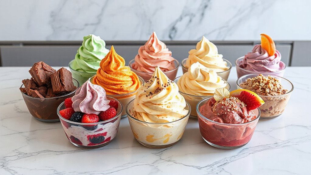 The visual appeal and texture of frozen treats can make or break the overall enjoyment. I find that vibrant colors, layered designs, and garnishes instantly elevate a dessert’s look. Achieving the perfect texture—whether creamy, velvety, or fluffy—depends on proper freezing times and ingredient ratios. To get smooth ice cream or gelato, thorough mixing and avoiding ice crystal formation are essential. Layered or swirled creations require precise timing and techniques to keep segments distinct and attractive without blending into a single mass. Adding mix-ins like chocolates, nuts, or fruit pieces not only boosts visual interest but also enhances texture contrast. Paying attention to these factors helps create visually stunning, satisfying frozen treats that delight both the eyes and the palate.