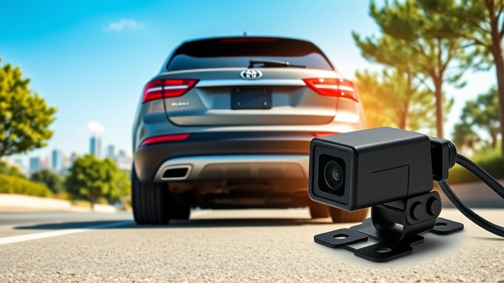 Safety and security features play a vital role in maximizing the effectiveness of a premium backup camera kit. I look for systems with wide viewing angles and adjustable parking guidelines to improve safety during reversing. Night vision and waterproof ratings like IP69K ensure clear visibility and durability in all weather conditions. Many top kits include dual-camera setups or split-screen displays to reduce blind spots and give multiple perspectives. Features like automatic activation when reversing and real-time image transmission help prevent accidents and boost security. Additionally, anti-glare monitors and customizable image settings enhance visibility and reduce driver fatigue. These safety-focused features not only make reversing easier but also considerably increase overall vehicle safety, giving me peace of mind on every drive.