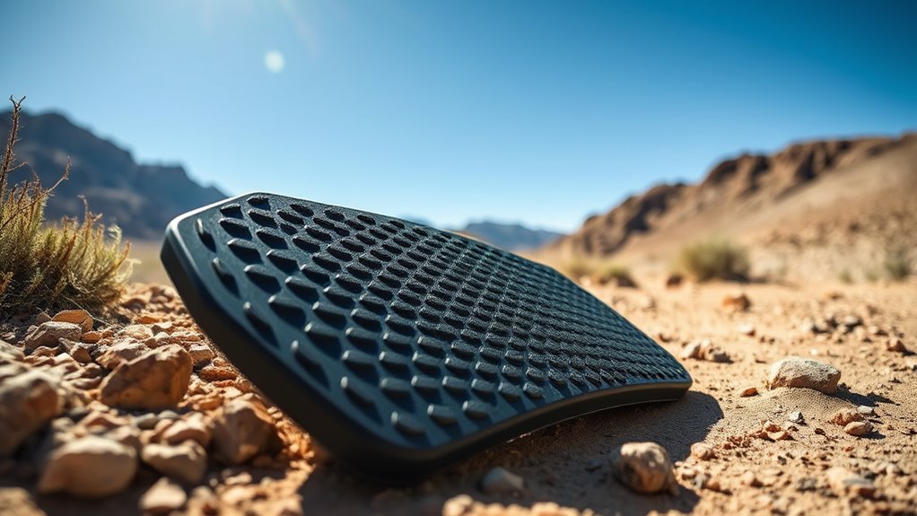Choosing the right premium recovery board hinges on its material durability and strength, as these factors determine how well it withstands tough off-road conditions. High-quality boards are crafted from automotive-grade polypropylene, reinforced nylon, or impact-resistant plastics, ensuring they can handle vehicle weights of 10 tons or more. These materials maintain flexibility, bending up to 120°, without cracking or breaking under extreme temperatures from -30°C to 60°C. Impact resistance and UV stability are essential, preventing deterioration from sun exposure and rough terrain. Additionally, replaceable parts like teeth or steel plates boost durability and longevity, making sure your recovery boards stay reliable over time. Prioritizing these material qualities guarantees performance and resilience when you need them most.