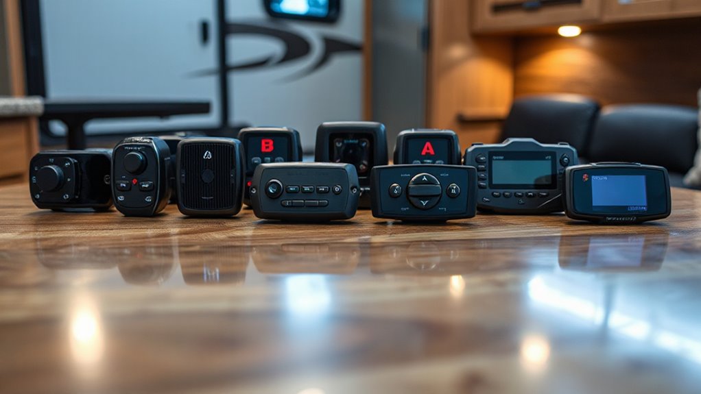 Understanding the different braking technologies available is essential for selecting the right trailer brake controller for your travel trailer. I’ve found that proportional braking technology is a top choice, as it uses internal sensors to adjust the braking force based on my tow vehicle’s intensity and speed, resulting in smoother stops and less sway. For lighter loads, time-delay systems work well by gradually applying brakes, enhancing control. Some advanced controllers even offer features like automatic leveling and adaptive calibration, adjusting to my load and road conditions. I appreciate manual activation options for emergency situations, too. Plus, smart technology with Bluetooth connectivity allows me to make real-time adjustments via my smartphone, giving me increased convenience and control on the road.